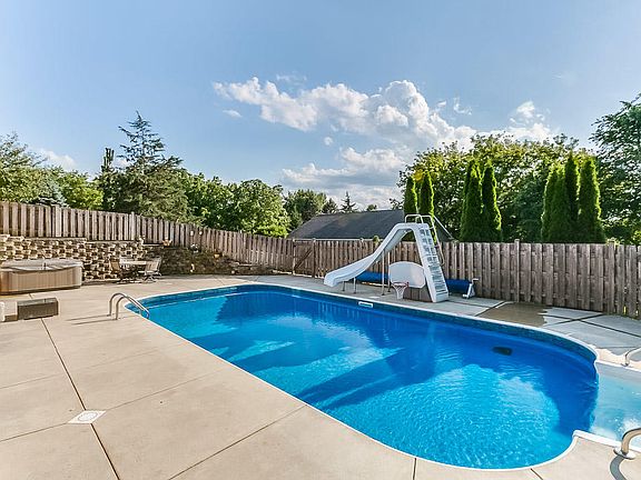 Absolutely beautiful home with gourmet kitchen w/stainless steel appliances, island and breakfast bar overlooking private setting. 4 season room, vaulted ceilings, and completely finished lower lever with wet bar and game room and a full bath that opens up to the private inground pool. 4 car detached garage w/water, heat and electric. Property also has inground sprinkler system.