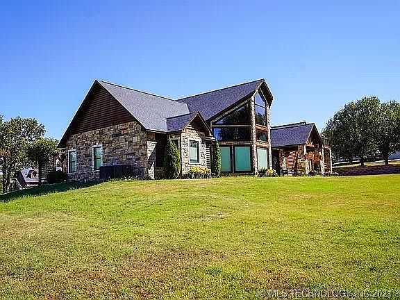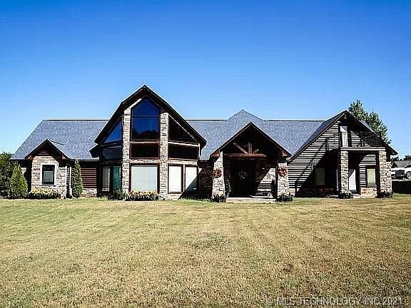 SOUTHEAST OKLAHOMA LUXURY HOME FOR SALE 4 BEDROOMS, 2.5 BATHS CUSTOM BUILT LOCATION: 34929 Alma Lou Lane Poteau, Oklahoma, is located just minutes outside of the city of Poteau, Oklahoma. It is handy to all the amenities of the city including schools, grocery stores, churches, and medical facilities. The larger city of Ft. Smith, Arkansas, population about 80,000, is roughly a 20-minute drive. There is excellent hunting, fishing, camping, hiking as well as a variety of outdoor activities surrounding the many local lakes, rivers, and streams. LAND: Approximately 2.25 acres of land. This is level ground that is open for pastureland and excellent soil for gardening. There are excellent views of Cavanal to the southwest. It has areas of large mature shade trees scattered throughout the property. UTILITIES: The property is served by OG&E Electric, Rural Water District 1, AOG Natural Gas, internet. HOME: This home was built in 2005 with an estimated 5820 s.f. 4 bedrooms and 2 1/2 bath. There is a 21.6' x 8.5'entryway with leaded glass door, arched vaulted ceiling and crystal chandelier. The decor puts you in mind of a Lodge in the mountains. The home sits on the southern portion of the property on the corner of Ridge Road and Alma Lou. DINING/LIVING ROOM: 23' x 41" 6". This room spans the entire width of the house with the north and south ends of this room with floor to ceiling windows to view the property with the mountain in the background. The stone floor to ceiling fireplace has an ornate mantle & stone raised hearth, is in the center of the room. 22' stained tongue & groove vault ceiling, knotty pine exposed beams, and custom large dental crown molding. This space has 2 ceiling fans with lights, laminate floors in the living area transitions to open dining area with earth tone ceramic tile floors. The dining area is compliments by a luxury suspended light chandelier. KITCHEN: 14.4' x 15.6' Granite counter tops, gray walls, stainless vent hood, stainless built-in microwave & convection oven, stainless double door refrigerator. Bay window overlooking the black double basin sink with large backsplash and stainless faucets, with view of the backyard. Corner stainless gas Kenmore elite 4 burner stove, stainless dishwasher. The large island has a dining bar, perfect area for meal prepping, eating and family functions. PANTRY: 12' x 5.6' Floor to ceiling shelving, ceramic tile floor, instantaneous hot water-on demand, and fluorescent lighting. MASTER BEDROOM: 19.2' x 17' with 12' tongue and grove vault ceilings, ceiling fan with light, oak hardwood floor, corner gas log natural stone ornate fireplace with wooden mantle raised hearth. MASTER BATHROOM: 11.8' x 15.5'. Double door, earth ceramic tile floor, gray textured walls, jacuzzi tub with ceramic walls and stained-glass windows, spacious ceramic tile shower, single vanity with cabinetry below and corner make up vanity with storage. MASTER CLOSET: 12' x 7' lots of built-in shelving, drawers with hardwood floors and attic access. LAUNDRY: 9.6' x 8.7' Earth ceramic tile floor BEDROOM #2: 11"6 x 11' 6". Carpet flooring, closet with shelving and clothing rods, ceiling fan with light. BEDROOM #3: 11"6 x 11' 6". Carpet flooring, closet with shelving and clothing rods, ceiling fan with light. BATHROOM #2: Tub/Shower combo, large closet with shelving, window to side yard, vanity mirror and sink. HALL BATH: Ornate light fixture, gray ceramic tile floor, sin with cabinetry, mirror, and lighting. DEN: 26.8' x 21.6' French door to patio, accent lighting, textured walls, built-in cabinetry, office area, door to rear covered patio, barn wood weathered tile ceramic floors and includes a 11.5'x8' safe room. The scenic back area of the home, you will find a spiral staircase leading to the north upstairs bedroom. Outside the master bedroom is a pergola with porch swing and a tile floor deck with hot tub. UPSTAIRS Leading to the second level is a wood staircase with center carpet runners. The upstairs landing overlooks the entryway and living room area. The hallway has hardwood flooring, accent lighting, dentil crown molding and attic storage off the hallway. There are textured walls and ceiling throughout the upstairs area. UPSTAIRS HALL BATH: tub/shower combo, linen storage cabinet, single vanity with mirror, toilet with overhead cabinets, ceramic tile floor, accent lighting and window overlooking backyard and sitting area. UPSTAIRS BEDROOM #1: 12' x 13' new carpet, wood base boards, custom ceiling fan with light, closet with built-in shelving, glass built-in shad door leading to balcony. UPSTAIRS BEDROOM #2:15.9' x 16.2' New carpet, built-in drawers, closet, ceiling fan with light, glass door built-in shad landing to large balcony on front of the home. UPSTAIRS BEDROOM #3: Walk through bedroom #2 to get to this 12.2' x 20.6' area with new carpet, walk-in closet with built-in shelving, 7.3' x 4.10' inset nook sitting area overlooking rear yard, ceiling fan with light and built-in storage drawers. PRICE: $599,000 AGENT COMMENTS: This is by far the most impressive home I have ever offered for sale. Luxurious touches and finishes abound this custom built home. The shear attention to detail and the craftsmanship is almost impossible to describe. So many features it was hard to choose the pictures without putting so many that it would be hard to load the page. When you're inside the home you absolutely feel you are in Colorado in a high end mountain resort. Pictures and words do not do this place justice. Call us today to set up a private showing.