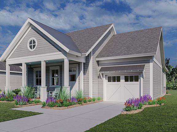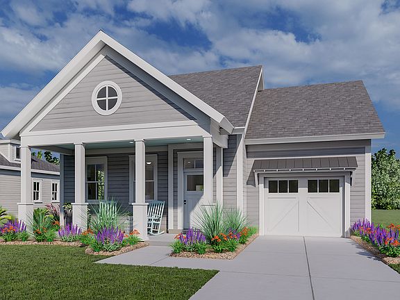 The Albemarle is a one-story floor plan. Immediately upon entry, you are greeted by an open concept family room, eat-in and kitchen with an expansive center island. The primary suite with connecting patio is located just down the hall with dual walk-in closets, water closet, and optional boxed ceiling and dual vanities. The secondary bedroom is nearby with private access to the guest bathroom. Both bedrooms are conveniently located near the laundry room and additional coat and linen closets. A one-car garage completes this floor plan.