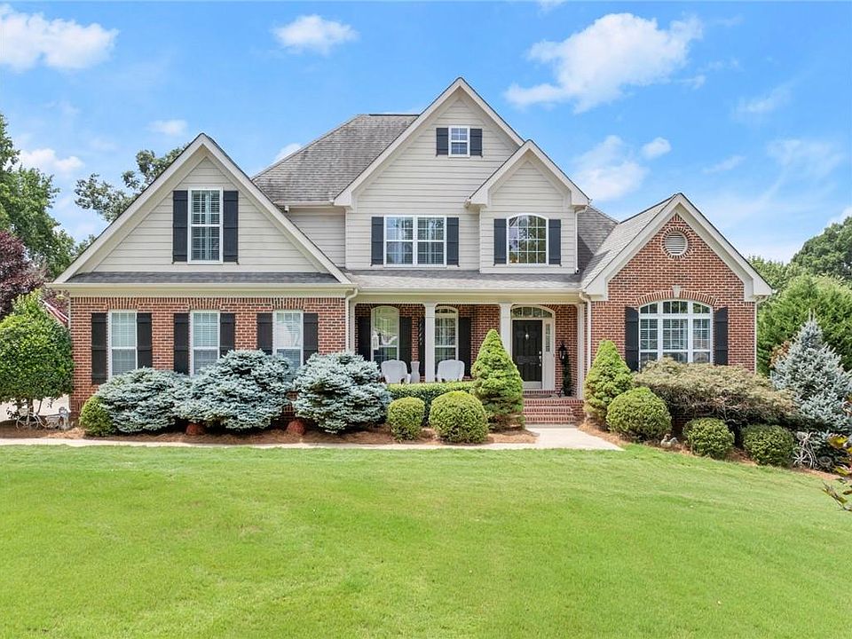 BACK ON MARKET at no fault of the seller. This beautiful 4-bedroom, 2.5 bath home sits on a sprawling 1.09 acre lot at the end of a peaceful cul-de-sac. Step inside from the cozy front porch to a stunning 2-story foyer that flows into a large dining room and family room featuring a masonry fireplace. A bright kitchen offers plenty of counter space, corner windows over the sink, a breakfast bar, pantry, and a breakfast room with bay window overlooking the backyard. From there, step onto the expansive screened porch, perfect for enjoying wildlife and the serene surroundings. As a Bonus, you'll have seasonal views of Lake Lanier, all without the Lakefront Price! The main level primary bedroom has direct access to the screened porch and an en-suite bath with walk-in shower, large tub, and double vanity. Also, on the main level is a flex space ideal for an office or an additional gathering room. Upstairs, you'll find 3 oversized bedrooms and a full bath. The unfinished basement is ready for your vision, with room to add a full bath and customize the extra space. Step outside to the brick patio with a swing, and enjoy the grassy, usable acreage, perfect for outdoor activities. Located just 1 mile from Duckett Mill Boat Ramp for the Lake enthusiasts and easy access to shopping, dining, and entertainment.