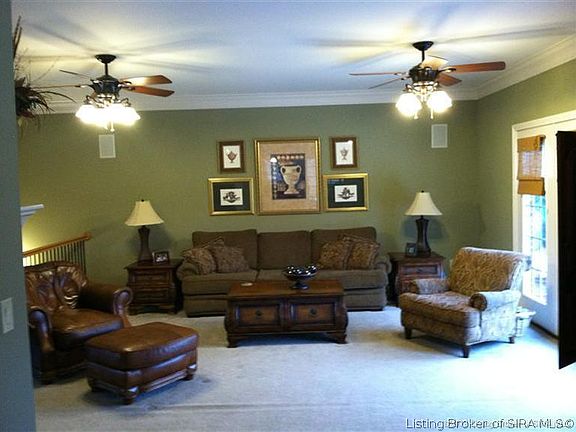 Custom built ranch in desired Floyds Knobs. Fresh paint and more hardwood. This home offers views of Valley View Golf Course from the front porch and a beautiful horse farm from your covered back porch. This open concept home with 9 ft. ceilings throughout was built for entertaining. Large custom kitchen with Maple Glazed cabinet and double ovens, Anderson windows, surround sound, finished walk-out with large family room, game room and bar. Sellers are licensed real estate agents in Indiana. Additional land available. Home Warranty being offered.