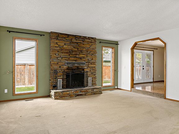 This fabulous single-level home is move-in ready! It has tall windows that allow lots of natural light. The welcoming Entry is a wonderful place to greet your guests. The spacious Family Room has a beautiful stone fireplace and can accommodate large furnishings. The Kitchen has generous cabinetry, a breakfast bar, and an Eating Nook with access to the backyard. Relax in the Primary Bedroom, which overlooks the front yard and has a private bathroom. It has a fenced yard, a covered patio with a remote-controlled SunSetter Awning, and mature trees. It's in a great location near schools, parks, and shopping, and it has quick access to I-84, the airport, and downtown Boise! Come tour this fabulous home!