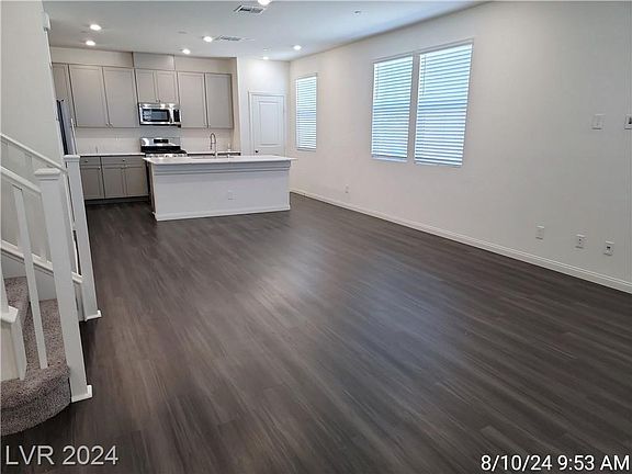 Welcome to the exciting Inspirada community! This 3-bed, 2.5-bath townhome offers a stunning modern design that perfectly blends style and functionality. The great room truly lives up to its name, seamlessly connecting to the open kitchena chef's dream with an island, quartz countertops, abundant storage, and ample workspace. The sleek stainless-steel appliances complete the modern feel, making this kitchen the heart of your new home, where you'll always be part of the action. The spacious primary bedroom features a walk-in closet, double sinks, and a tub/shower combo, offering a perfect retreat. A versatile loft area separates the primary bedroom from the secondary bedrooms, providing additional living space. Small pet considered. Trash remains in owner's name, resident pays $20 monthly for service.