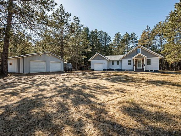 Allow the modern curb appeal to welcome you to this darling 2 bedroom, 1 bath home. The warm, neutral tones instantly create a feeling of home, walking into the open living and dining area. Seamlessly flowing into the kitchen, you’ll be eager to host the next dinner or game night. The back entry is off the kitchen, but the built in shelves are great for storing any outdoor gear. A bedroom and full bath are located on the main level, with an oversized bedroom as the entire upstairs. A freshly painted lower level features utilities, but also a blank slate for another living space or workout room, complete with direct access to the attached garage. Situated on 2 acres, this property also includes a detached garage for additional parking space or storage. A charming home, close to great fishing lakes and convenience stores.