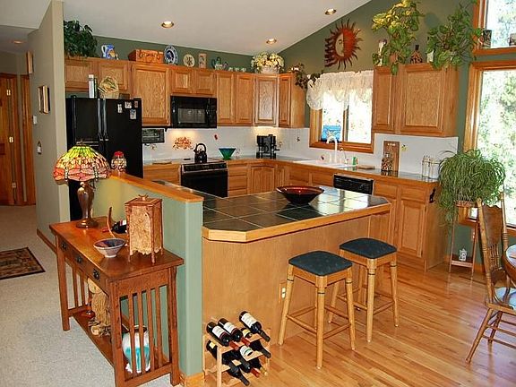 Pride of Ownership ~ Turnkey Condition! Updates, upgrades and great upkeep make this home move-in ready. Nicest area home for $330,000. Gleaming hardwood floors, appealing custom paint colors, decorator lighting, lots of big windows. Sunny, pine-treed setting. Flat, usable land. Paved County maintained roads. Community water ? no well worries. Level paved driveway. 2 car attached garage plus 2 car detached garage (with 220V electric for shop) and a storage shed too. Extra off-street paved parking - room for mid-sized RV too. Wrap-around deck and patio both with sunny exposure. Efficient natural gas heat. Open floor plan, vaulted ceilings. Spacious cook friendly kitchen with ample storage. The Great Room features a gas log fireplace and the lower level Family Room has a gas log stove adding coziness and mountain character. (Internet 5943637-3/4/2012)
