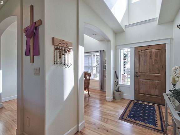 Spacious ranch style with all the beautiful amenities in the country. Open floor plan, high ceilings & luxury upgrades throughout. Entryway w/ above skylight and built in lighting, new paint inside & out, refinished hardwoods & upgraded carpet. Formal living room w/ high ceilings, built in surround sound, gas fireplace & gorgeous picture windows w/remote controlled shade overlooking a mature garden. Formal dining area has coved entry & high ceilings. Upgraded kitchen comes w/ tons of cabinet & countertop space, under cabinet lighting, instant hot, gas stove, granite countertops, oversized island, eating area and nook w/ all appliances. 1st bedroom has vaulted ceilings, skylight & closet .2nd bedroom has lots of windows, high ceilings upgraded carpet & double closets, Main bedroom w/ walk in closet, shelving system, built in surround sound, access to private covered patio, large bathroom w/ built in skylight over a jetted tub & separate shower, double sinks & storage. Family room located off the kitchen w/ slider to large, fenced yard, open & covered patio w/ built in electric awning & remote-controlled ceiling fan, perfect spot to entertain. Nice sized laundry room / mudroom combo w/ sink, cabinet and countertop space. Expansive landscaping w/mature garden beds, fruit trees, bushes & perennials on a 9-zone automatic irrigation system. Beautiful rose garden w/ water feature and custom insulated chicken coop that any chicken would feel right at home in, comes w/ electricity & easy access to exterior nesting boxes. Animal barn/utility shed w/ electricity that opens to crossed fenced lane for westside pasture access. Separate fenced dog run with hot/cold plumbing for bath time. 30x30 workshop w/natural gas furnace, 50-amp service and 8ft bay door. Home has built in vacuum system, New 50yr roof, 2018 septic w/sand filter, newer hot water heater. gutter screens installed on home, garage & all buildings. Emergency 7000-watt generator with emergency power to breaker box.