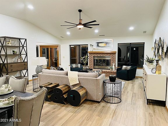 Great starter, second or a downsized home located in the prestigious Ranch at Prescott. Beautifully maintained; single level living featuring 2 spacious bedrooms & 2.5baths, eat-in kitchen, formal dining room and huge living room with a beautiful brick faced gas fireplace, laundry room and a 2 car garage with cabinetry and utility sink. Large owners suite with walk in closet and big bathroom. 2021 upgrades to include stainless steel appliances, vinyl plank flooring, new paint, new epoxy in garage, new light and plumbing fixtures, and new ceiling fans. Stunning front and backyard with beautiful trees. Close to Prescott National Forest, Lynx Lake, Costco, Trader Joe's, restaurants, shopping and easy access to the Valley of the Sun. Don't miss the opportunity!! LA related to seller.