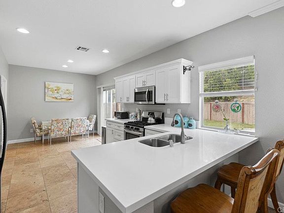 Seller is entertaining offers between $735,000 & $765,000. This move in ready home with solar system has 3 bedrooms with an optional 4th. The optional 4th bedroom can be used as an office, nursery, or a bedroom. All bedrooms are upstairs and come with carpeting & ceiling fans. Master bedroom has a double sided fireplace, walk in closet & a barn door for privacy in the master bath. Both full baths have corian counters, dual sinks & tile flooring. Master bath has a separate step in shower as well as a tub. Downstairs has travertine flooring, crown moulding, half bath & laundry room. Kitchen features quartz counters & white cabinets. Adjacent family room has a fireplace. Private back yard with no homes behind is ready for entertaining. Home also has A/C, whole house fan & force air heat. Very LOW HOA DUES. Close access to HWY 15 & HWY 76. Virtual Tour is uploaded as well.