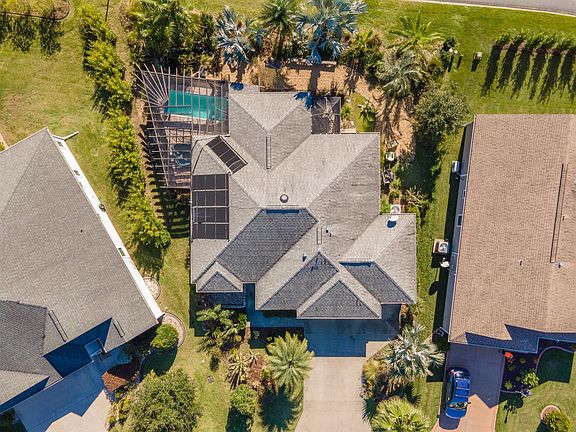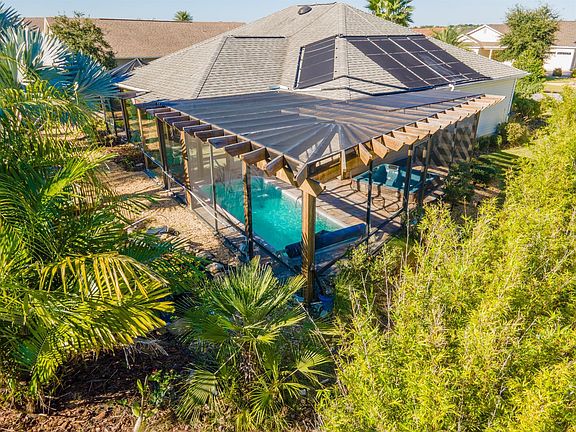 Pool/Spa home. A unique WISTERIA. : Real hardwood 3/4" flooring in the main living area, wood accent ceiling, wainscoting in the kitchen breakfast nook, and for the screened pergola over the pool area. The solar-heated saltwater pool and a spa/hot tub with brick pavers, landscaping with a pond, fountain, and waterfall. There's also a spa/hot tub for extra relaxation. Lanai expanded and framed in custom-built western red cedar enclosed with Cardinal Solar 320 pano Glass for 4 season use with fireplace, antique French Doors, brick pavers & Barnwood accent wall. There's also a 2nd screened area on the west lanai. A bay window in the front guest room. All bedrooms have new luxury vinyl plank flooring. The laundry is conveniently located near the master suite and the master bath boasts double sinks and a Roman shower. The tiled kitchen has maple cabinetry, stainless steel Whirlpool appliances, and a reverse osmosis water system at the sink for the purest drinking and cooking water. Plus, there's NOVA Whole House Water Filtration system and water softener. Lightning rod protection, gutters surrounding the home, and a front paved patio. In the Village of Fernandina. Golf cart