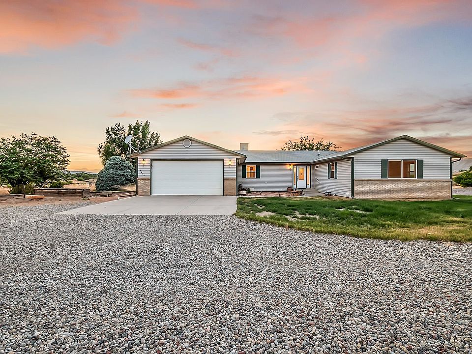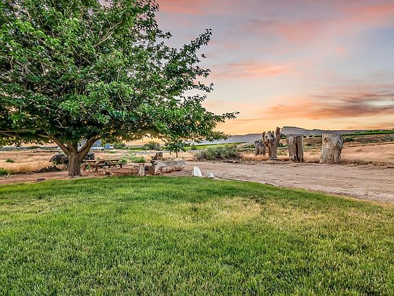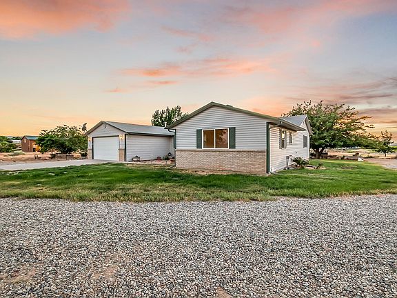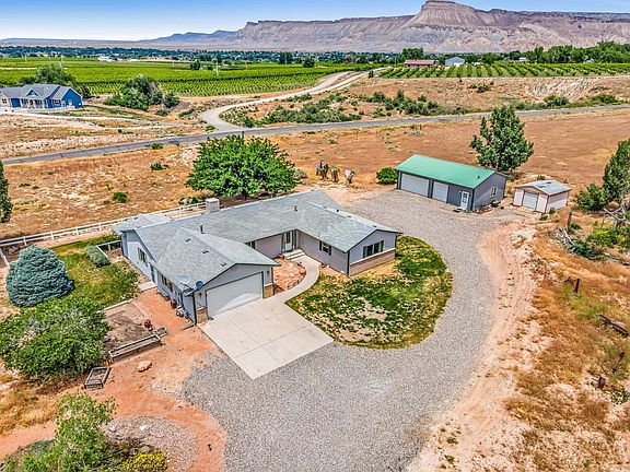 Very rare IMMACULATE Ranch-style 3 bd + Office home on irrigated acreage right in the Heart of Palisade orchards and vineyards with 360 degree mountain VIEWS in every direction! This rare property boasts not only an exceptionally extra deep attached garage, but also a 40 x 24 heated shop w/1/4 bath! RV Parking for all your favorite toys, and space and tranquility beyond measure! The home provides a massive-sized kitchen with breakfast bar and giant move-able center island! Gas range for the chef, and lots of space to entertain impressed guests! GIANT windows throughout the home to overlook your majestic Palisade views! Huge great room with cozy gas fireplace, and the primary suite boasts an absolutely GORGEOUS 5-piece bath w/jetted tub, in-floor radiant heat, and a shower so beautiful it looks like it jumped right out of a magazine! All 3 bedrooms are sized larger than most, and the office has double built-in desks and shelving. Relax on your spacious slate-stone front patio looking up at the Mesa, or on your back patio or "storybook" sitting space under a tree overlooking Mt. Garfield and the entire Grand Valley! Two entrances to this incredible property, and possibilities galore! The 40 x 24 heated shop is truly "The Dream Shop!" BLM Access right up the road! And you can literally walk down the road to Carlson Vineyards and it's close to a dozen wineries and orchards. Come home to peaceful elegance and spacious tranquility. Buyer to verify all info and measurements.