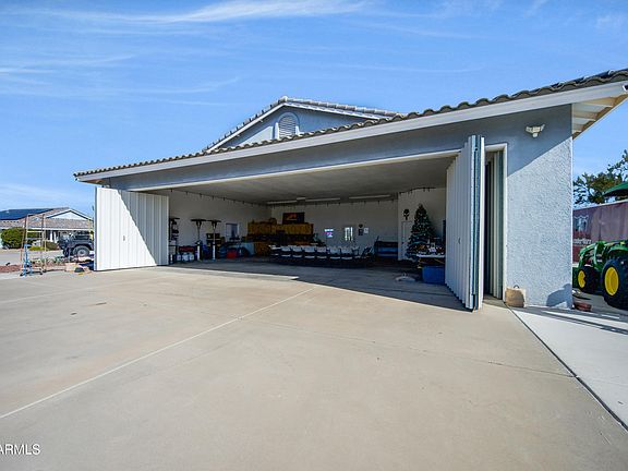 Rare opportunity in Twin Hawks Airpark on 4+ acres with a fully finished, insulated 2,500 sq ft hangar (approx. 49' wide x 9.7' door height) featuring swamp cooling and a full kitchen with dishwasher, oven, and disposal—ideal for entertaining. Home includes a fully paid Tesla solar system with week-long battery backup, Starlink internet, and two separate septic systems. Main garage is insulated, heated/cooled, and equipped with a Tesla charger. Roof underlayment replaced in 2024 while preserving long-lasting tile roof. Primary bath offers a heated jetted tub. Additional features include a potassium soft-water system, newer hot water heater, newer fans, patio is pre-wired for a hot-tub, driveway lighting, and multiple fruit trees. Permits and plans for a future casita are already in place