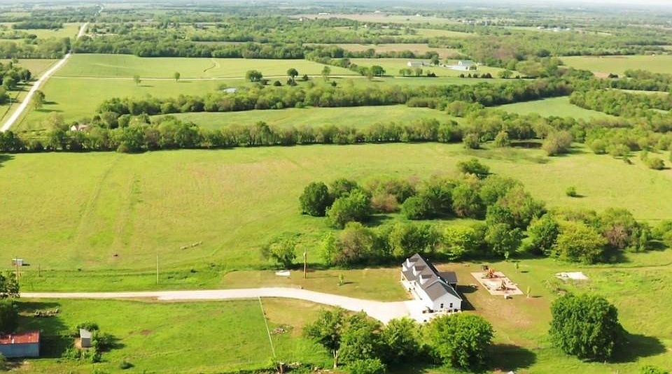 True country living on 40 beautiful acres on Spring Valley Road in the Louisburg school district, featuring a spacious 6-bedroom farmhouse newly built in 2023! This one has room for everyone. This inviting home showcases a massive dining room and a perfect farmhouse kitchen with an oversized island, abundant cabinetry, and a walk-in pantry perfect for storage. The main level offers an ideal layout with a private primary suite plus two additional bedrooms on the same floor, providing flexible options for family, guests, or office space.