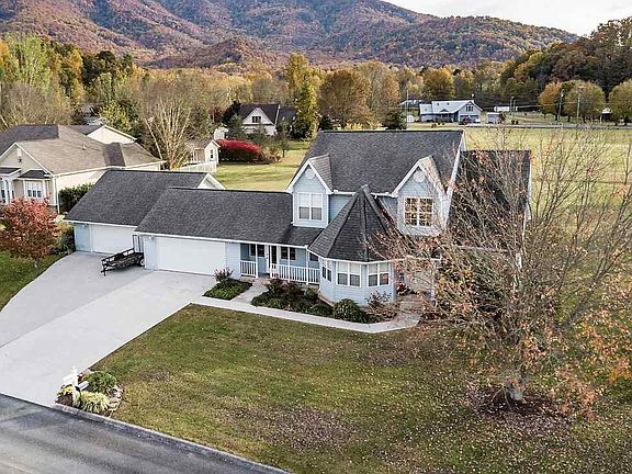 SMOKY MOUNTAIN views from this picturesque setting in Wears Valley! Car enthusiasts will love the 1269 square feet 4-CAR GARAGE! The main level features a well-designed floorplan with lots of natural light. Many upgrades were done in 2011. The kitchen has granite countertops, an abundance of cabinets, and an open dining room with trey ceiling. The living area is highlighted by a gas fireplace, vaulted ceiling, & entry through the french doors onto the stone paved outdoor dining and entertainment patio. The patio is also accessible from the all-season sunroom. In addition to a half bath and laundry room, the main level is completed with the master suite which has bay windows to enhance the natural light and view of the mountains. The master bath has a huge walk-in closet, 5 ft walk in shower, double vanities, and dressing area. Upstairs there are two additional large bedrooms, a full bath, and extra storage. Custom blinds throughout. Two double attached garages, the second one being 25X30 with a 7' pull through garage door on the back, attic storage in each garage, and plenty of additional space for workshop. CALL TODAY TO VIEW THIS FABULOUS PROPERTY! Drone photos are labeled as "Drone photo".
