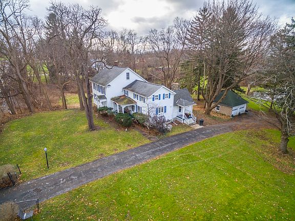 AMAZING POTENTIAL! Upon driving up this lot takes your breath away with 5+ scenic acres, a creek and a gorgeous pond! The property has subdividing potential for a total of three separate lots! The historic house is loaded with potential and period character & charm! This traditional home boost exceptional size with nearly 2,800 sq. ft. Keeping with tradition the first floor features expansive rooms including an eat-in kitchen with a walk-in pantry & laundry, a family room with beamed ceilings and a wood burning fireplace, a formal living from with a gorgeous wood burning fireplace, and an office/first floor bedroom, plus a powder room! The second floor features 4 spacious bedrooms & 2 full bathrooms! Amazing location close to everything, yet rare privacy with 5+ acres! Amazing Potential