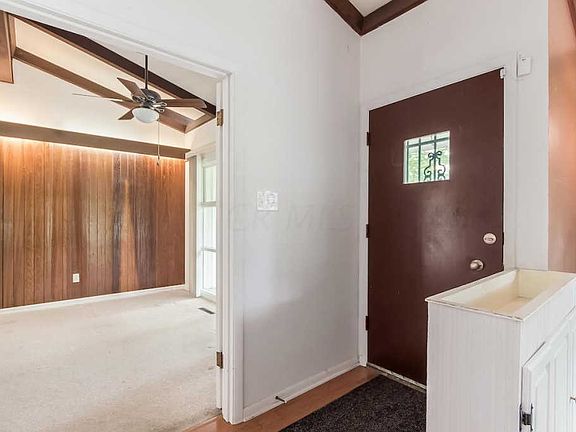 Rare opportunity to purchase sprawling ranch on just under 1-acre inside 270/Hilliard Schls. Enter to hrdwd flrs, vaulted/beamed ceilings, fireplace. Updated kitchen has cherry finish cabinets,formica countertops, all appliances remain. Sliding glass door to pastoral rear yard, screened porch. Five BR's, 2.5 baths. Home is being sold ''as is'' and is priced accordingly. Comparable homes in pristine condition selling in Woodland Estates for $350+