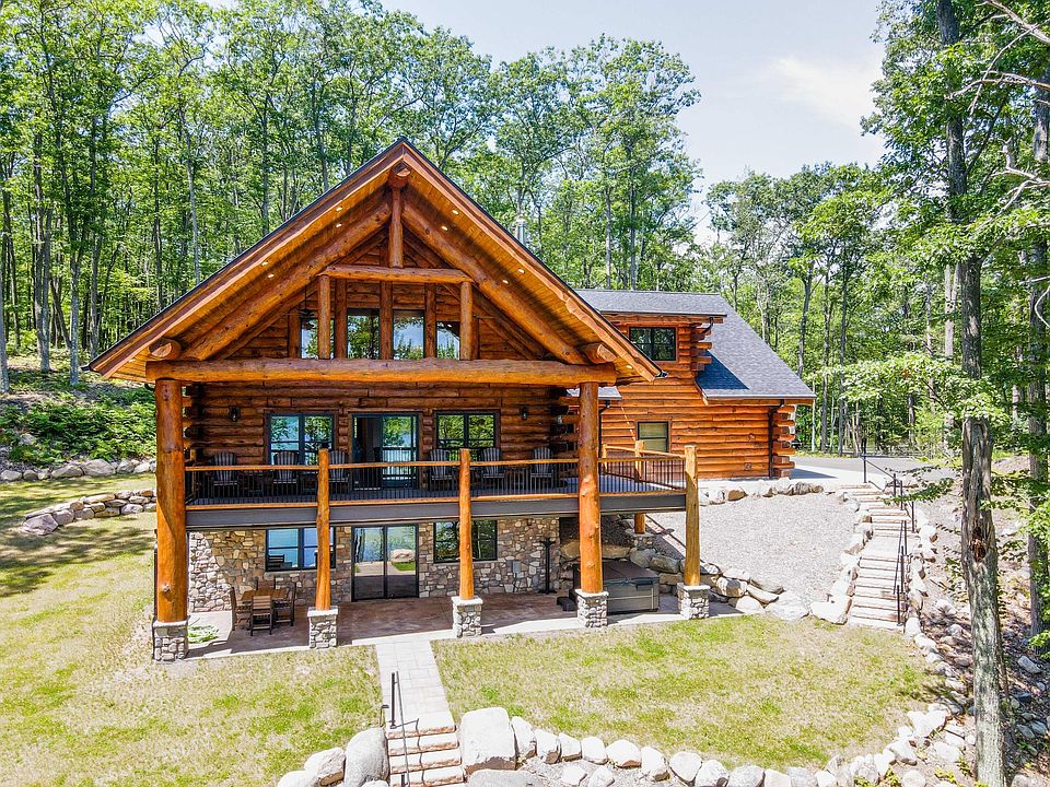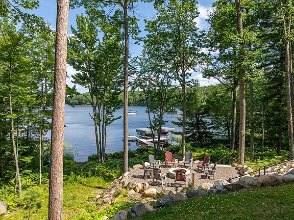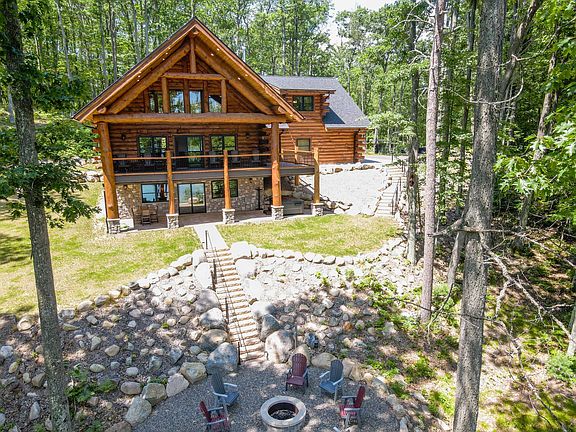 It's your dream home. Just 3 years old, this massive timber frame log home is constructed of hand hewn logs and set on a stunning Lake Thompson lot with 6.5 private acres. With 4+ bedrooms & 4 baths, you will find space, beauty, & function on all 3 levels. Home was designed with lake enjoyment in mind both inside & out, and you love the views from all three luxurious levels of the home. Upper lakeside deck is nearly 400 sq. ft, and is an incredible vantage point to enjoy the big water view. Lower level walk-out features a patio under the upper deck with a saltwater hot tub for year round enjoyment. A huge professionally landscaped fire pit awaits between the home & lake as one of several great entertaining or relaxation spots. Sand frontage with a great pier for swimming and boating. Home is FULLY FURNISHED and the interior speaks for itself with a long list of features including security, generator, Spectrum internet, luxury finishes throughout. Heated 4 stall garage w/ epoxy floors.