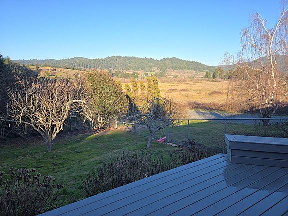 Rural paradise! This 3-bedroom 2-bathroom Hydesville homestead sits on nearly an acre of sun-soaked Southen-Humboldt land! Located a stone's throw from the neighborhood's elementry school, this home features custom-made wood kitchen cabintry, stainless steel appliances, vinyl plank flooring, a large living room with an attached balcony overlooking acres of farmland, and much more! Outside, you'll find a roomy carport, a sizeable front yard, and a fully-equiped backyard perfect for the farmstead enthusiest! The backyard has a vegitable garden already in place, as well as a chicken coup. This home is goat and duck friendly as well! Enjoy summer evenings playing lawn games in the backyard or observing picturesque sunsets from the balcony!