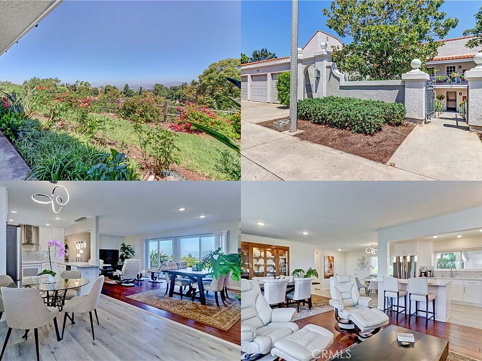 PANORAMIC VIEW!! Remodeled 2BD/2BA "La Quinta" condo located on the bluff to enjoy the amazing mountain and city lights view plus a great ocean breeze! From the moment you walk in, prepare to be impressed by this top of the world view. There are sliding doors in the living room and both bedrooms plus a long patio to take advantage of this amazing location. The patio side of the condo is oriented northeast for sun the morning and the kitchen widows face southwest for the afternoon sun. Beautiful remodel includes an open kitchen with white shaker cabinets (soft close cabinets/drawers & lazy susan), quartz countertops including an island with pendant lighting and breakfast bar seating, wine refrigerator, added pantry, recessed lighting, large window over the kitchen sink and stainless and white appliances. The great room features space for formal and informal dining plus large living room area. This room is heated/cooled with a ductless mini-split for quiet, energy efficient climate control. Walk right out to the patio with your own garden area that runs the length of the patio and small greenbelt - perfect if you have a pet! Back inside, there is full size washer/dryer in the hallway closet behind the bi-fold doors. The guest area features a good sized room with mirrored closet doors and sliding doors out to the patio. The adjacent guest bathroom has an updated vanity, fiberglass walk-in shower and small window. The master suite is another "room with a view" to wake up to through the sliding glass doors, enjoys a walk-in closet plus a beautifully remodeled bathroom with quartz-topped vanity and large walk-in shower with glass sliding doors. Flooring in this home is a combination of laminate in the living room and bedrooms and vinyl plank in kitchen, hallway and master bath. Ceiling are smooth and baseboards upgraded. Enjoy your spacious detached one car garage that is set on the end with extra storage space and driveway in a private cul-de-sac with lots of guest parking. This home is just a short distance to the Clubhouse 5 with pool, mini-gym and large party room for large club and LW events! This remarkable home is ideally situated within Laguna Woods - allowing residents to take full advantage of its impressive amenities to stay social and active.