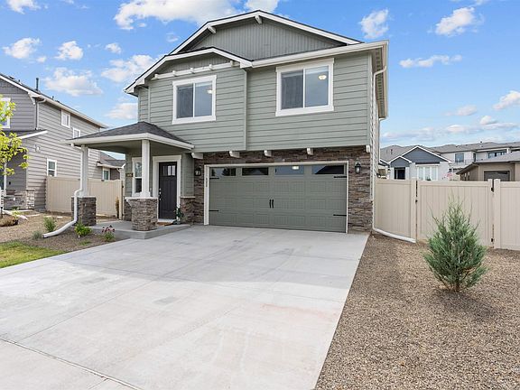 PRIME LOCATION!! on this BRAND NEW, never-occupied Hayden Homes build in the HEART of thriving MERIDIAN, Idaho near shopping areas, fantastic restaurants and just minutes from freeway access! Nestled in the charming community of Jocelyn Park, this "Darrington" model is a well-laid-out floor-plan that lives larger than most mid-sized plans. The dramatic entry leads to the OPEN-CONCEPT main living area with plenty of light and vaulted ceilings, creating a seamless flow into the kitchen island and dining area. The kitchen is a dream come true, featuring stunning steel grey leathered GRANITE countertops, complemented by elegant SOFT-CLOSE white SHAKER cabinets and a beautiful tile backsplash. The STAINLESS steel appliances, including a GAS range, makes cooking a joy. Upstairs, the primary bedroom offers a private haven with it's own luxurious en-suite bathroom, and two other generously sized bedrooms and bathroom. New high-end blinds throughout and refrigerator INCLUDED! MOVE RIGHT IN!