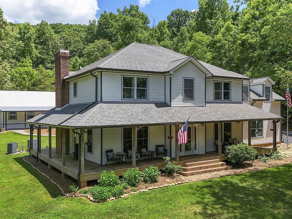 Come and see this extraordinary property sitting on over 12 acres, offering two primary suites and a detached efficiency apartment. As soon as you turn into the driveway of this picturesque property, its tranquility and beauty will draw you right in. With a beautiful wrap around porch, the main home sits on 12.43 acres and offers a freshly remodeled 4 bedroom, 4 bath, 2 car garage home. Additionally, the detached guest house offers an efficiency apartment, multi-purpose room and an additional sizable garage. Both houses have been tastefully remodeled with elegance and practicality in mind. The main level of the primary home boasts a lovely heart of pine floors, a beautiful kitchen with a large island, granite countertop, bar, and custom cabinetry. Just off the kitchen is an open dining and den area with large windows offering a wonderful view of nature. Also offered downstairs are two additional rooms that could be used for more dining, living, or office space. A full bathroom is also on the main level. Upstairs, you will find a second bedroom with a full bath as well as a sizable Jack and Jill bedroom and bathroom combo. The very spacious primary suite has a large walk-in closet and walk in shower. You cannot miss the massive bonus room with 3 closets and a very functional laundry room. Enjoy the many options for outdoor space enjoyment or entertaining including a substantial covered, screened in patio. If all that isn't enough, the property has 2 septics, and RV hookup and parking space and travel time to West Knoxville is 30 minutes and to Maryville 45 minutes and a boat ramp is less than 10 minutes away.