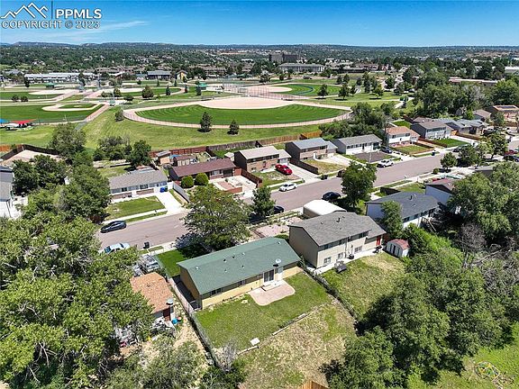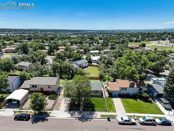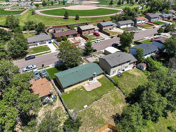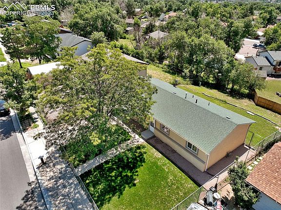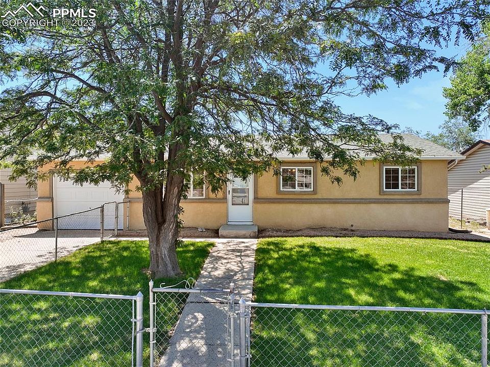 Prepare to be captivated by the warm embrace of this charming abode nestled in the picturesque landscapes of Colorado Springs. Ideally located close to Fort Carson and Peterson Space Force Base. This delightful home is adorned with an easily maintained stucco exterior, a fully fenced yard, and a mature tree gracing the front yard. Inside you'll be greeted by new texture and paint. The living room has a large window that brings in abundant natural light. It flows seamlessly into the dining area & inviting eat-in kitchen that offers offers a convenient walk out to the backyard. The updated kitchen features a wood look vinyl floor, white cabinets w/ solid countertops & tiled backsplash for storage & easy food preparation. Appliances include a smooth top range oven, vent hood, & side by side refrigerator. The dining area has wood llook vinyl floors, a lighted ceiling fan, & slider out to an expanded backyard patio. There are three spacious bedrooms w/ plush carpet & lighted ceiling fans that share an updated bathroom which provides a tile floor, vanity, & tiled tub/shower. It also serves as a convenient laundry area w/ built in shelf and washer and dryer that stay. There is an oversized 1-car attached garage with service door to the backyard. The spacious fenced backyard offers a patio for outdoor dining & relaxation & lots of room for the kids & dog to run & play. The Pikes Peak Park neighborhood has multiple schools & parks within its boundaries including the Leon Young Sports Complex, Giberson Park, Centennial Park, & Adams Park. Don't miss the opportunity make this beautifully updated home your own!