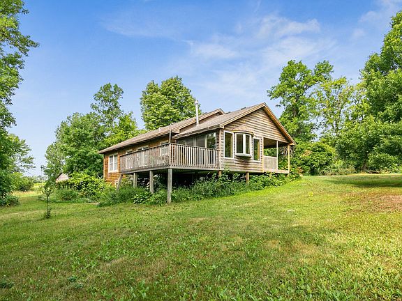 Huge price improvement!! Definitely a must see! Channel your inner artist in this unique custom built rambler w/reclaimed wood & stained glass finishes thruought MF as well as tasteful custom art deco finishes. Welcoming 4 season porch/sunrm w/free standing fireplace & full length windows on 3 sides! Gourmet kitchen w/huge butcher block center island & storage galore. DR & LR off kit for an open feel, finished w/reclaimed flooring, beams, & stained glass windows. Stunning! Light & bright work area/reading nook off living room. Or make this your home office, what a view! MF BR has custom wall art & double closets as well as a built in area for your media. MF BA has in-floor heat! LL has 2 bedrooms, laundry, full bath & nice family room w/walk out to patio. Currently has hot tub room which could easily be converted to 4th bedroom if hot tub is remedal. Det gar has attached, insulated workshop w/wood stove heat. Pole barn w/cold storage in lower level and heated art studio in upper level.
