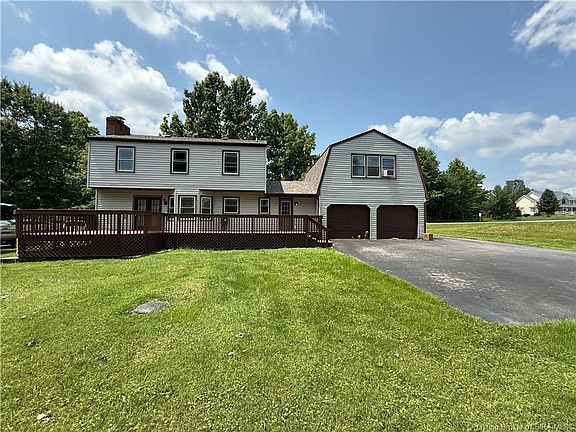 Welcome to "Golf Course Views in Floyds Knobs!" This stunning 4-bedroom, 2.5-bathroom home is nestled in the scenic Floyds Knobs, IN, offering breathtaking views of the nearby golf course. The home boasts a spacious layout with new laminate flooring and carpet throughout. The Family room features a cozy wood-burning fireplace and built-in bookshelves, perfect for displaying your favorite reads or collectibles. The kitchen is equipped with an electric range/oven and dishwasher both new in 2025, and the home also offers washer & dryer hook-ups for your convenience. The property includes a large deck, perfect for outdoor entertaining, and a two-car attached garage with a garage door opener. Above the garage, you'll find a large finished room, offering a versatile space for your needs (please note, this room does not have heat or A/C). The home sits on a generous 1.46-acre lot and includes an unfinished basement, providing ample storage or potential for additional living space. With a new roof installed in 2025, this home is ready for you to make it your own.