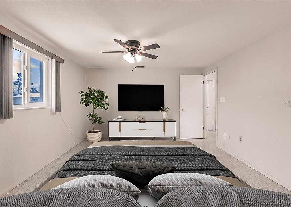 One or more photo(s) has been virtually staged. Solidly Built 2-Bedroom, 2-Bath Home with New Hurricane Windows & Updated AC! This home offers durability and comfort, featuring new hurricane-impact windows for added security and a brand-new air conditioning system (installed in 2024) with warranty included. The screened lanai provides a great space to relax. There is an irrigation well for sprinklers and a fenced yard ensures privacy, and the backyard shed offers convenient extra storage. Located in a prime area near shopping and dining, this home presents a fantastic opportunity.
