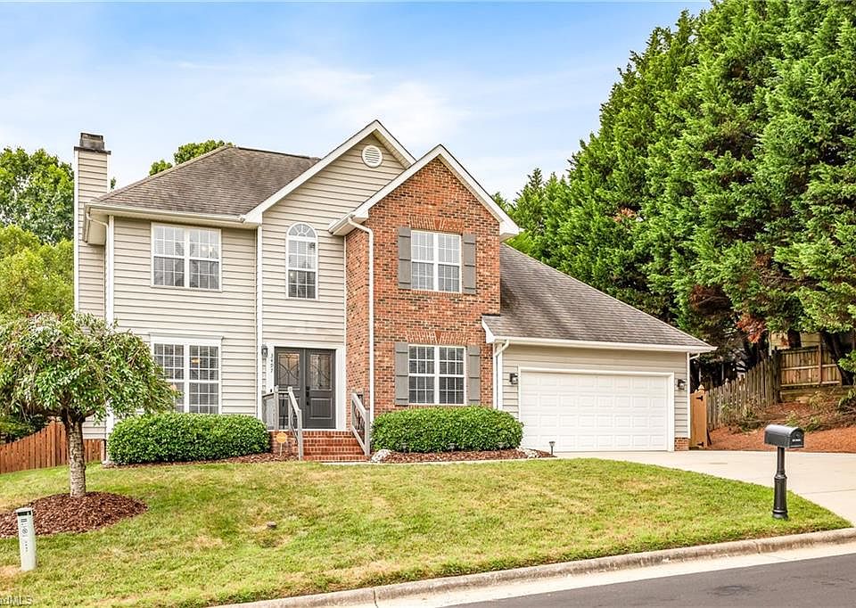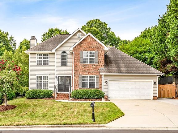 MULTIPLE OFFERS; SUBMIT BEST OFFERS BY NOON 7/29/24. Home offers 3 bedrooms & 2.5 baths sitting on a beautifully landscaped lot. Kitchen features quartz counters, custom tile backsplash, gas range & dining area overlooking backyard. Large living room w/ fireplace has French doors that open to screened porch. Room currently used as office could also be additional living or dining space. Spacious primary bedroom upstairs with walk-in closet, & ensuite bath with double sinks, separate soaking tub & walk-in shower each with custom tile. Newer carpet with upgraded pad in all bedrooms. Great outdoor living with vaulted ceiling screened porch, multi-level deck & fenced yard that will be great for playing cornhole or letting Fido run around! Other features include storage shed, additional parking pad beside house & gutter guards. Great schools - check with GCS on when the newly-constructed Claxton Elementary will be ready! Close to New Garden/Battleground shopping w/ easy access to Bryan Blvd.