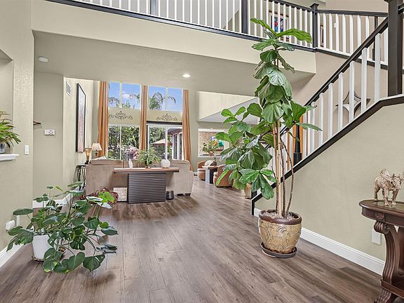 This spectacular 4071 sq. ft. home offers 5 bedrooms, 3.5 baths and an oversized room perfect for a play area, entertaining space, or for your guests. For your convenience a fabulous master suite and junior master are located on the main level. Separate living and dining rooms, classic gourmet kitchen, kitchen nook, wet bar, and walk-in pantry. OWNED SOLAR! This is an incredible opportunity to purchase a highly desirable floor plan in a gorgeous neighborhood. Custom designed pond with over 20 gorgeous koi fish. Much of the furniture can convey with sale. Huge Large yard with amazing pool with grotto make this a perfect home! Close to schools & freeway.