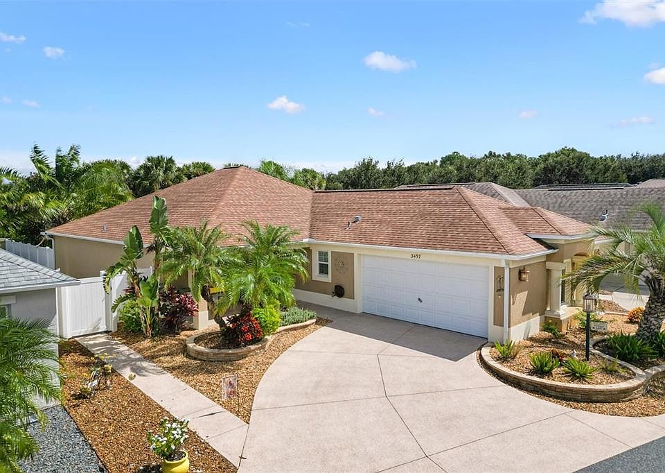 Welcome Home to Your Wyndham Model in The Villages! BOND Paid. Experience the perfect blend of elegance, comfort, and Florida lifestyle in this stunning 3-bedroom, 2-bathroom villa with a 2-car garage. This home has no carpet, no grass, and is beautifully landscaped—truly the epitome of low-maintenance luxury. Step inside to a very open, split floorplan that balances privacy with spacious living—ideal for both everyday life and entertaining. The large foyer welcomes you into a bright, airy space, flowing seamlessly into the living areas. Features You’ll Love: Master suite with tray ceiling, private bath, and spacious walk-in closet Luxurious vinyl plank flooring throughout for modern style and durability Bright kitchen with sunny nook and abundant cabinets Formal dining room for hosting family and friends 12-foot disappearing sliding doors that open the living space to your private outdoor oasis Pull-down attic stairs for extra storage. Whole-house Nova water filtration system for clean, great-tasting water Insulated garage door with stained concrete & epoxy garage floor Outdoor Living at Its Finest: Screened birdcage enclosure Partial in-ground hot tub Spacious lanai with epoxy cement flooring Cute front porch area for morning coffee or evening relaxation Neighborhood & Amenities: Join a social, fun-loving community with Thirsty Thursday events, men’s & ladies’ golf leagues, and co-ed golf Close to Evans Prairie Country Club and its amenities Short distance to 3 Executive Golf Courses and Eisenhower Regional Recreation Center Three community pools within 3 minutes Just a five-minute golf cart ride to Brownwood Town Square Nearby shopping: Publix, Target, Home Depot, Lowe’s, and more This home is truly a must-see, offering comfort, style, and Florida indoor–outdoor living at its best. Don’t miss your chance to join one of the most sought-after neighborhoods in The Villages!