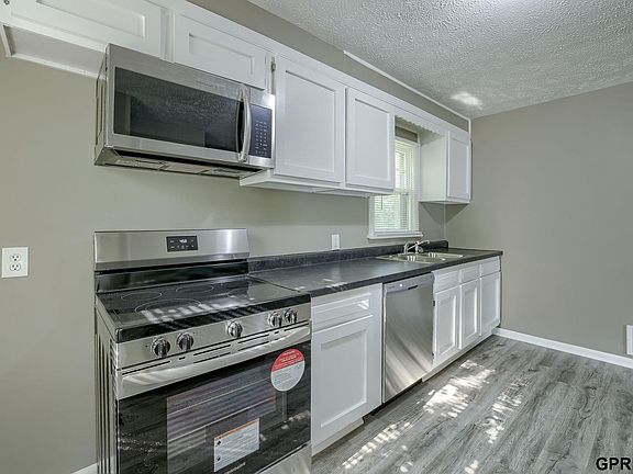 This stunning raised ranch is fully remodeled, offering a perfect blend of classic charm and contemporary elegance. With 750 sq ft this home features 2 cozy bedrooms and a beautifully updated bathroom. Step inside to discover refinished hardwood floors that flow seamlessly throughout, providing a warm and inviting atmosphere. The kitchen boasts brand-new stainless steel dishwasher, microwave, garbage disposal, stove, fixtures, cabinets and countertops . The bathroom has been completely renovated with new fixtures. New interior paint, window treatments and electrical fixtures throughout. The exterior of the home is equally updated, boasting a single-car garage and a spacious backyard adorned with mature trees. New roof, gutters, concrete, and paint adds piece of mind that major updates are years away. Don’t miss out on this incredible opportunity to own a fully renovated North Omaha beauty!
