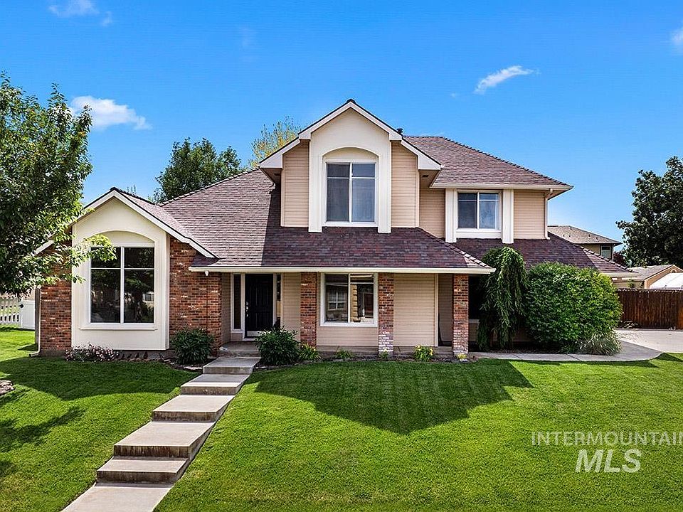 A timeless residence with a 3-car garage, RV parking, and a backyard designed for entertaining! Soaring double-story ceilings welcome you into the home as beautiful hardwood flooring flows into the open great room, highlighted by a gas fireplace, natural light, and a charming dining nook with a curved wall of windows. The kitchen showcases beautiful granite countertops, crisp white cabinetry, and a full suite of stainless steel appliances. A dedicated office or guest suite completes the main level, while double French doors introduce the master suite, featuring a large walk-in closet and en suite bathroom with a soaker tub, dual-sink vanity, & fully-tiled walk-in shower. Outdoor living shines on nearly a quarter-acre lot, w/ two attached pergolas for shaded entertaining, a sprawling lawn wrapped in mature privacy landscaping, a built-in flagstone firepit area, gated RV parking pad, & storage shed. Ideally located just minutes from Discovery & Settlers Park, The Village, & Falcon Crest Golf Course!