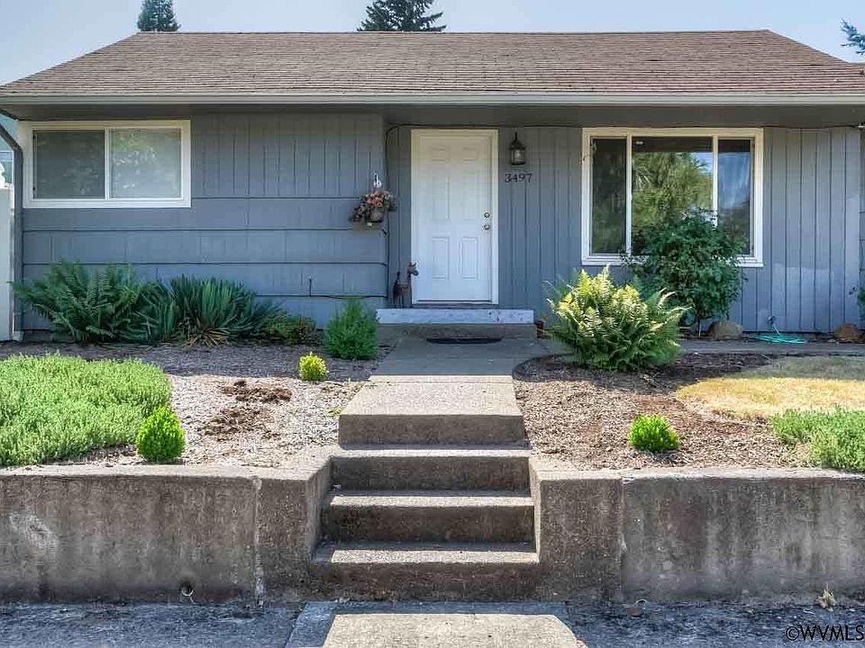 Accepted Offer with Contingencies. Great single-level close to everything you might want in South Salem! Laminate and tile floors, stainless steel appliances and lots of windows to let in natural light. The floor plan separates the master suite from the other two bedrooms and full baths for privacy. Large laundry/mud room off back yard. Great fenced yard and detached 2-car garage. Short distance to school, church, bus line and shopping!