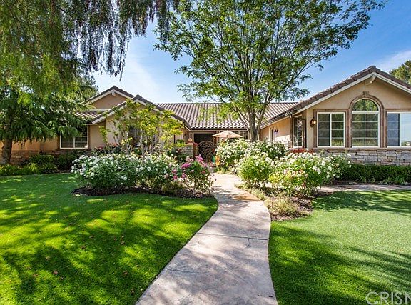 Entertainers delight! Proudly presenting this move in ready 3300 square-foot single-story beauty situated on 2 acres. Just imagine enjoying your sunsets sitting by the outdoor fireplace & overlooking your infinity pool with sweeping canyon view's!!! Upon entering immediately you will appreciate the open floorplan that boasts high ceilings, a true master suite with spa style bath, game room, custom bar, cooks kitchen open to the family room, spacious secondary bedrooms, crown molding throughout , multiple fireplaces and more. The extensive grounds offer RV parking w/50 amp electric power, koi pond, outdoor kitchen area with Viking BBQ, fireplace, putting green extensive lighting including bistro lighting to complete the California indoor/outdoor living experience. Additionally there are many more upgrades to appreciate such as Solar (paid for NOT leased $$$), tinted windows, Ring Security cameras and lights, outdoor speakers and fans, newer 50 gallon water heater (- 5 years), copper rain gutters, faux grass font and back (huge money saver)?????? the list goes on and on..... Once you arrive you will never want to leave!