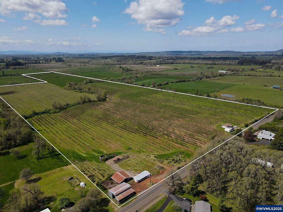 99 Acre Farm & Homesite featuring a Hazelnut Orchard w/creek frontage & water Rights. Producing orchard just entering its prime! 60+ acres of McDonald hazelnuts (5–9 yrs old) w/ drip irrigation & newer field tile installed. 26+ acres in tall fescue grass seed. Regenerative practices: rotational grazing, organic amendments, cover cropping, limited pest/herbicide. Class 2 & 3 suitable soils. Multiple structures & outbuildings (previous dairy farm). Build your dream home, grow the size of your farm...or both!