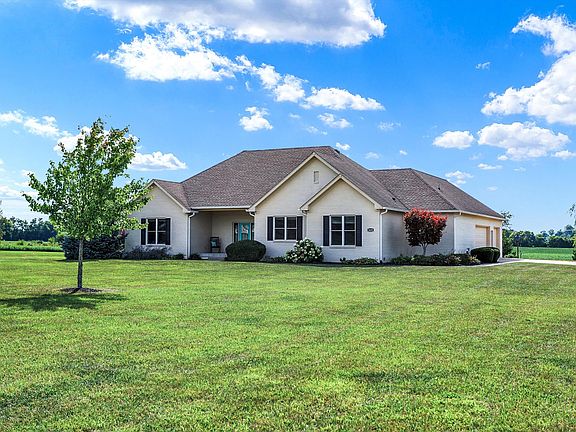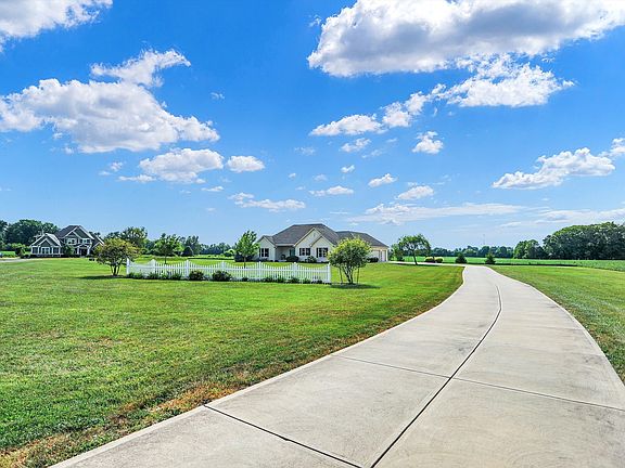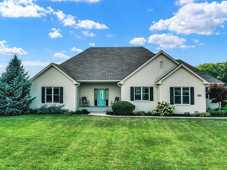 What a setting! Sitting off the road on 3.23 acres, this custom ranch is a must see! Enjoy the picturesque backyard featuring salt water sport pool and the best sunsets on south side! Built in 2013, this brick ranch has a perfect open floor plan w split bedrooms, beautiful hardwood floors, arched doorways, built-in bookcases, large laundry room, & tons of natural light. Owner's suite features dual closets, custom tile shower w rain shower head, double vanity, & spacious bedroom. You'll love the 23'x38' garage with epoxy floors, storage cabinets, half bathroom for pool, stairs to the attic space that could be finished into additional living quarters, & even custom storage under stairs. Meticulously maintained and ready for you!