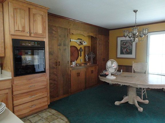 Beautiful home on six +- Acres outside City limits. Open concept Kitchen, Den and Dining with Fireplace.. New roof and siding, pool liner replaced 2019. Main level has 4 BR, 2 BA. Large laundry room with storage. Deck off Den. Terrace level has FP plus 2 BR, 1/2 BA. Weight room. Heating and Air still under warranty. Two water heaters. Two outside storage buildings will remain. Seller will furnish a one year home warranty policy. Sold ''as is''.