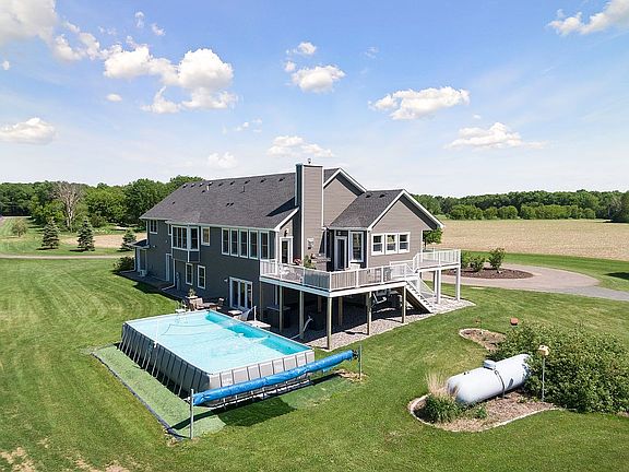 See the entire property here- https://tours.spacecrafting.com/n-2rrw and check out the virtual tour at https://tours.spacecrafting.com/n3d-2rrw Incredible 4,560 square foot country home on 25 acres. This home and land are nothing short of ultimate privacy and luxury living! Modern home built in 2006 has been updated, added onto and remodeled in 2012 with additional remodeling in 2015 located on 25 quiet acres including wooded areas and surrounded by beautiful farmland. Drive up the long, private driveway into the large, three-stall garage with in-floor heat and easy, basement-level access into the home. Enjoy a morning sunrise directly out the master bedroom suite window wall and then experience a priceless sunset from the extra-large wrap around deck, the pool patio, the huge living room in front of the fireplace, or in the kitchen of your dreams! Also, watch or listen to what seems to be every bird Minnesota has to offer, deer, fox, pheasant,wild turkey and black bear (just to name a few) from this home with a view in every direction: north, east, south, or west. Entertain on the spacious and open upper level while the kids enjoy the fully finished walkout basement entertainment area which includes a complete kitchen of its own. Jump in the 16?X32? heated saltwater pool and see some of the clearest star gazing the area has to offer. Six nicely finished bedrooms: -Newly added Master Suite: tall vaulted ceiling with huge window wall, heated floors, private bathroom with connected laundry room (in additionto main lower level laundry room), walk-in stone shower and separate tub, walk-in custom closet, and work-from-home office area. -Original Master Bedroom: Vaulted ceiling, huge windows, private full bathroom with shower and separate tub. -Two spacious main level bedrooms with large windows and shared full bathroom. -Two lower level bedrooms with shared full bathroom. Beautiful pole barn: -40 ft. X 64 ft. with tall clearance -12 ft. X 64 ft. Lean-To -2 ft. eaves around entire building and two decorative cupolas -Two sliding 12 ft. doors with windows -Windows on all sides and a skylight roof -Storage shelving and upper loft area -LED lighting and electric outlets around perimeter In addition to the items described above, ATV trails wind throughout theproperty, the driveway includes a circle roundabout in front of the home, yard boasts a large fire pit, and there is beautiful landscaping throughout the property. Just over 5 miles north of HWY 8 in Center City/Chisago Lake Township inthe Chisago Lakes School District. This is a MUST-SEE. Once you visit, you?ll want to call it your own. DON?T WAIT, set up an appointment to view your future home NOW!