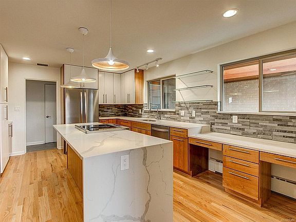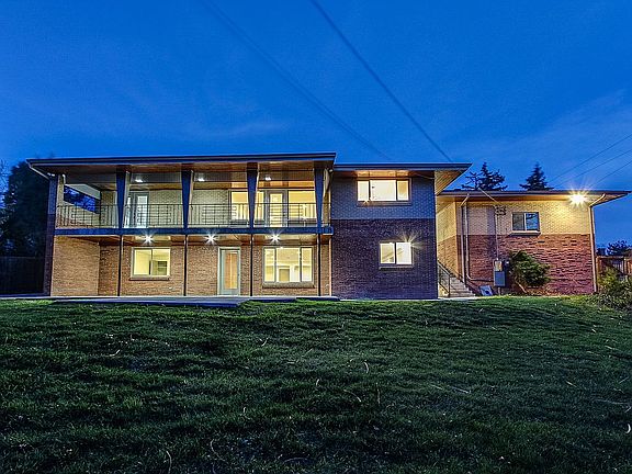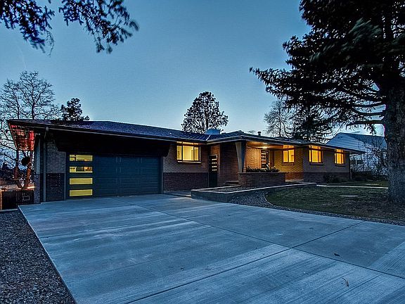 Spacious and nicely flowing open floor plan 5 Bedrooms and 3 Bathrooms 4,218 Square Feet with Walk Out Basement and attached over sized 2 car garage. University Hills. Main Floor Master Bed/Bath. mountain Views. Total Remodel. Required permits pulled. Includes all new electrical, plumbing, windows, bathrooms, kitchen and much more. Quartz counter tops, 2 fireplaces, jack and Jill bathroom in the walk out basement, tons of storage, wet bar kitchenette in basement, tons of storage, Large yard with a dog run, peach and apple trees and much more! Solid brick walls built in 1954 with frank Lloyd Wright -inspired architectural details throughout. New high end modern finishes with a contemporary look. Ample original features remain for a tasteful retro feel. All Exterior walls are cinder block construction Hidden safe is built in Original solid brass canceled door hinges New vinyl windows are argon gas filled for superior sound insulation All New electrical and wiring New PEX water piping throughout Permits pulled Hard wired smoke alarms Sewer line has been serviced and verified to be in excellent working condition, water main replaced in full in 2020. New roof installed 4 years ago Overhead garage door high lift opens fully to the ceiling allowing height clearance of up to 7 feet Cedar lined coat storage walk in closet Downdraft cook top Built in spice rack Brass door bell chimes are original. Brand new central AC