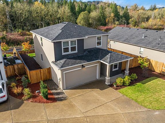 Truly smart 2-year new home with unbelievable 10k sq foot lot! Smart thermostat, locks, lighting and more! High ceilings, laminate flooring throughout. Spacious great room with fireplace. Kitchen with quartz counters, stainless appliances, island, eating bar, pantry. Dining room with sliding glass doors to over 10k sq foot lot! Primary suite with quartz counters, double sinks, shower and walk-in closet. 4 bedrooms plus main floor den perfect for at home office/play room. Views of protected area Springwater Corridor. Great walking trails and beautiful views!