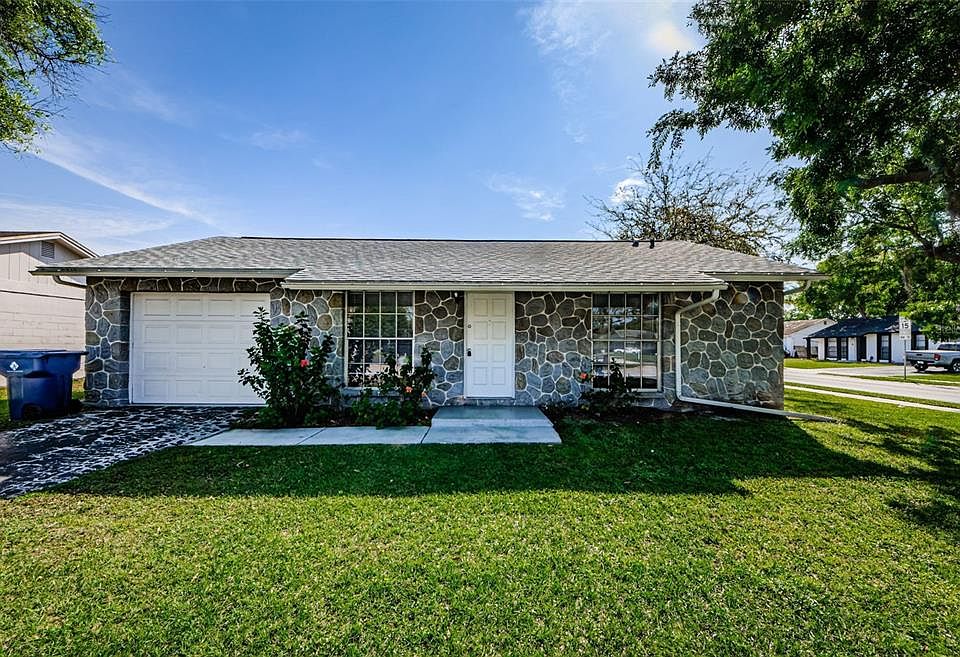 This charming 3 bedroom, 2-bathroom New Port Richey abode boasts all the comforts and conveniences you could ask for. As you pull into the driveway, you'll immediately notice the convenience of the attached garage, perfect for keeping your car safe from the elements or providing extra storage space. Step inside and prepare to be wowed by the open floor plan. Natural light floods the space through the large window in the front, creating a warm and inviting atmosphere. The living room features a built-in bookshelf, ideal for displaying your favorite reads or showcasing treasured keepsakes. The heart of the home, the kitchen, features shaker cabinets, granite countertops, and modern appliances. Whether you're whipping up a gourmet meal or simply enjoying your morning coffee, this kitchen has everything you need. Both bathrooms have been tastefully updated. And when it's time to unwind outdoors, you'll love the fenced yard with a patio, perfect for hosting summer BBQs or enjoying quiet evenings under the stars. Situated on a corner lot, this home offers plenty of privacy and space to spread out. Plus, its prime location near shopping, restaurants, medical facilities, and top-rated schools makes it the perfect place to call home. Don't miss your chance to make this gem yours! Schedule your showing today.