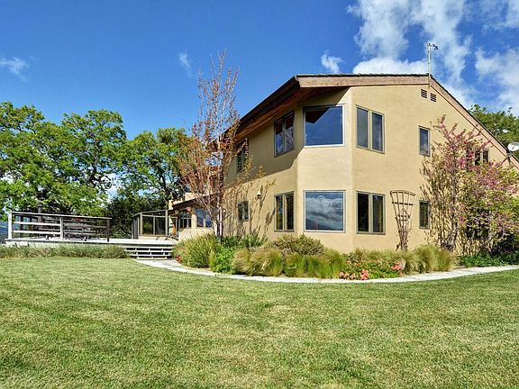 This is truly a magnificent home! With panoramic views of mountains, valleys, and vineyards, this thoughtfully designed Active and Passive Solar home is sited perfectly on a ridge crest. This 3678 sq.ft. eco-friendly home, designed and constructed by the current owner, is a masterpiece of energy efficiency and healthful living. Comfortable, light, bright, and spacious, the home has a laundry list of features too long to detail. Perfect for full-time living or weekend retreats. 322 square foot skylit spa room, with redwood jacuzzi is not included in square footage. Must see to appreciate!