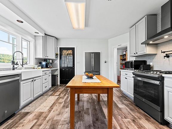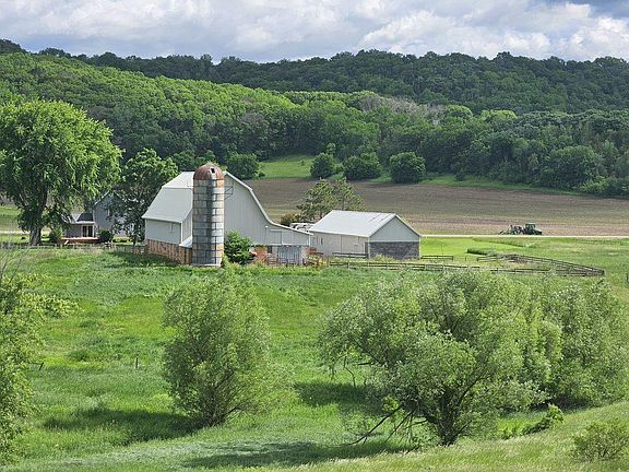 Rare find! Home and hobby farm with panoramic views of the bluffs on low traffic hard surface road just 2 miles outside of Lake City. This beautifully landscaped updated farmhouse has many modern accents and overlooks 11 acres of grassy meadows including frontage along Sugarloaf Creek. The spacious kitchen features subway tile backsplash and stainless appliances. The classic farm style buildings have been wrapped in steel providing many more years of service. The property has plenty of space for pasture, room for a huge garden and several acres have been farmed in the past. Trails with bridges over the creek have been maintained for easy walking. Deer, turkeys and a plethora of other wildlife frequent to the grounds. The property also includes a private shooting range. Convenient location just up the valley from town and only minutes from the shores of Lake Pepin. 13 miles to Red Wing and under an hour to Minneapolis & St. Paul.