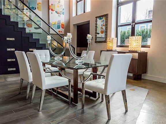 A true NYC alternative in downtown Greenwich. One of a kind modern condo steps from Greenwich Ave restaurants, movie theater and transportation, superbly finished by SBP Homes. Open plan first floor with 16' ceilings. Stairs or elevator to the mezzanine office area and second floor bedroom suites. Third floor includes 1000ft exterior roof deck with views of downtown, featuring fireplace, kitchenette and irrigated plantings - perfect for entertaining. Lower level includes 3rd bedroom, bathroom, laundry and family room with bar area. Two car garage and driveway with radiant heat!