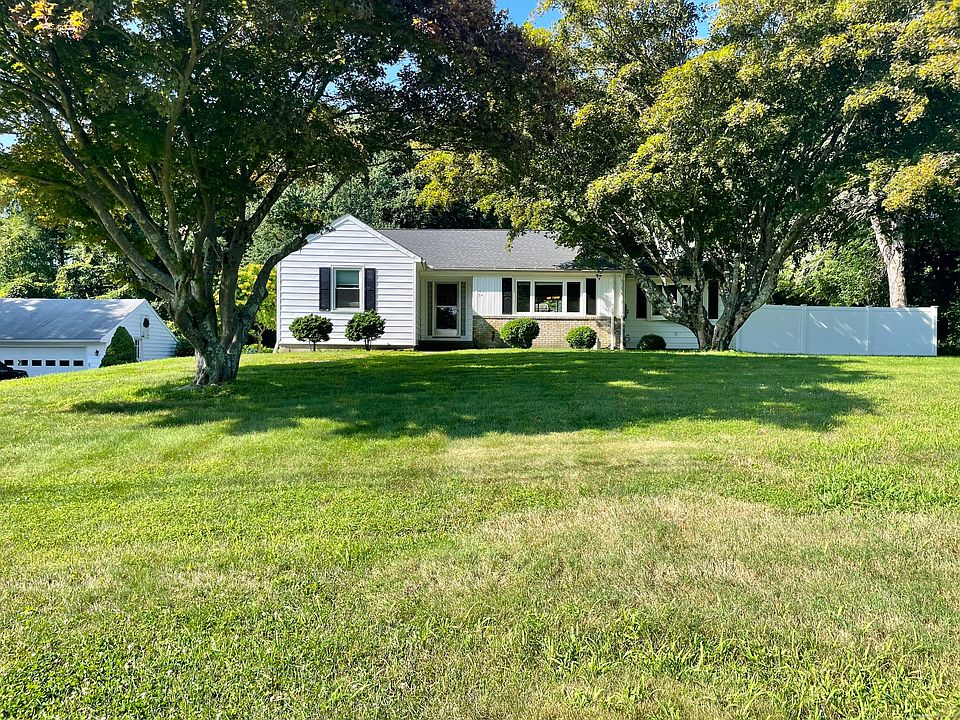 Huge level property -plots 34A & 34 = 2 acres. This beautiful ranch home features an open floor plan, Hardwood throughout Newer updated include recently painted interior, recessed lighting, ceiling fans, Kitchen New microwave, Stainless appliances, Granite counters. Living Room has fireplace with wood stove insert inviting space for both relaxing with family/ entertaining guests. New hot water heater, 2 renovated bathrooms. Lower level has endless possibilities New laminate floor, freshly painted, New Bath, Bedroom with private entrance -or as a home office, gym, craft area or workshop. ATT wired Security, Nearly Maintenace free, Rear deck/patio overlooks the level yard and treed lot. Oh, pet lovers a fully fenced pet area. Leaving the expansive yard for entertaining, great for all types of yard games, use the extra acreage for Tennis/paddleball court or Inground pool with cabana. ADU, Barn, Garage, Workshop; Adventures await in the wooded rear acre lot -or keep "natural" for tranquilly and privacy Many opportunities with the property! 34 Canfield R-40 parcel #1322696 Taxes $6,432.00 34 A Canfield R40 parcel # 2591527 Taxes $ 142.00 combines property 1.89 acres --each .92 acres