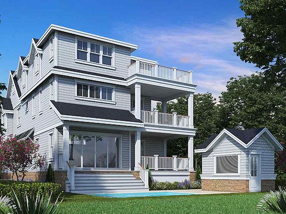 Welcome to the most exceptional beach lifestyle, only steps from the finest beaches of Avalon. This custom three story build by McLaughlin Construction and designed by Blaine Steinman Architects features stunning craftsmanship and detail throughout. The spacious and sophisticated new construction highlights 6 bedrooms, 6.1 baths, and living spaces large enough to entertain the whole family! Magnificent outdoor space to enhance life at the beach, showcasing multiple decks with spectacular ocean views. A welcoming entry leads to a first floor foyer and three generous bedrooms, all with ensuite baths. The first floor family room overlooks the outdoor oasis including an in-ground pool and large cabana. The upside-down design takes you to the second floor, where you will see the fabulous kitchen including high-end appliances and finishes including a subzero fridge, oven/range, and wine cooler. The sweeping great room has breathtaking cathedral ceilings and a fireplace for all year round use. There are two sliding doors with access to the roomy outdoor partly covered deck, ideal for relaxing, entertaining, or dining in the afternoon. There is two more bedrooms on this floor while maximize space. Walking up to the third floor you will find the luxurious master bedroom including a double vanity bathroom and the private deck which provides the best views. Other amenities and details include Hardie shake exterior with board & batten accents that will add up to striking exterior. Excellent wide planked hardwood floors, modern tile finishes, and custom cabinetry throughout. Live your best life in the north-end of Avalon, in the new home of your dreams.