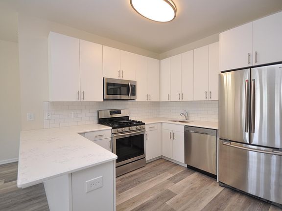 Welcome to Bay Village, a beautiful collection of luxury rentals conveniently located just steps to shopping, dining and the Seastreak ferry! This spacious oversized 1BR/1BA features fabulous kitchen appointed with sleek imported cabinetry, quartz countertops, subway tile backsplash, and Samsung appliances. Washer/Dryer in every unit. One year. Tenant pays all utilities. Pets ok w LL approval $75/per month pet rent, one time $350 pet fee