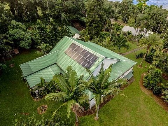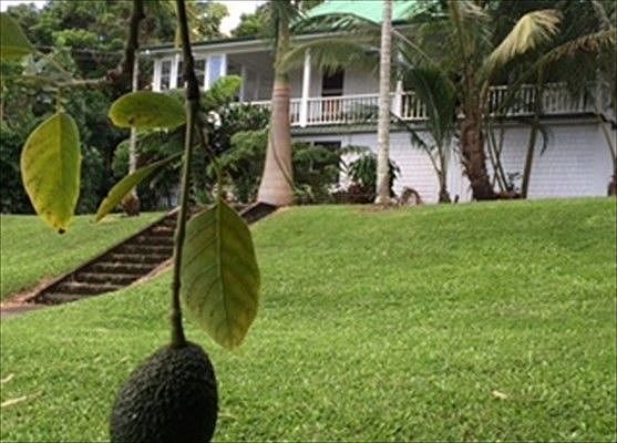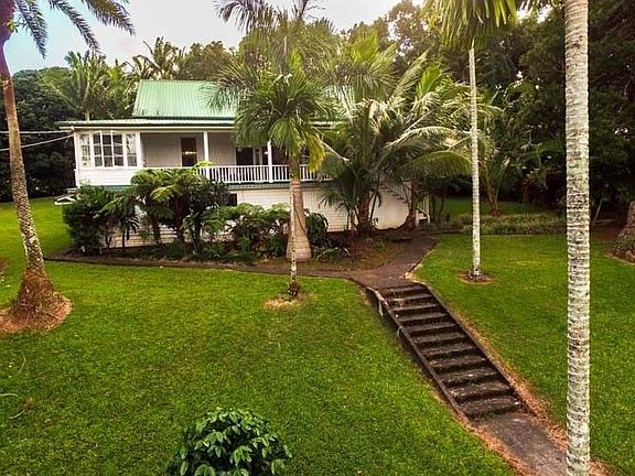 You will be impressed with this large historic plantation manager's house, located on the lush Hamakua Coast. Watch the whales and cruise ships from your stately home on the hill. The foundation of this home dates to 1909, but in 2005 the home was renovated. The renovation included electrical and plumbing to accommodate current utility demands. The owner has a 5 KW solar PV system, which is paid in full. Municipal water hook up and gas for appliances -- this home runs very efficiently!As you walk into the home you notice the soaring high ceilings, real wood floors, and detail of craftsmanship standard for a manager's home, but costly to replicate these days. The home has four very large bedrooms. There are two rooms on either side of the house split by 'Jack and Jill' baths. The huge chef's kitchen is perfect for entertaining and cooking. The kitchen features monkeypod wood countertops, stainless appliances, custom 'vintage -look' cabinetry, and a large island that has a prep sink and five-burner gas cook top. There is a charming pass-through covered porch between the kitchen and dining room; it's the perfect spot to enjoy a cup of coffee. The downstairs finished basement has a 3/4 bath and kitchenette for in-laws or visiting guests. The property is just over an acre of land with quaint walking paths, tropical plantings, fruit trees, avocados, and wide open lawn spaces. It's the perfect setting for both indoor and outdoor entertaining. Envision yourself entertaining friends and children playing in the charming tree house. Did I mention the coffee farm? This property comes with approximately 100 fragrant coffee trees, and the owners currently send the beans to be roasted locally, with their own estate label! Imagine mornings on your lanai with the ocean view, sipping your own organic coffee! Schedule a showing and you will feel the warmth and aloha of this home the moment you step on the porch.
