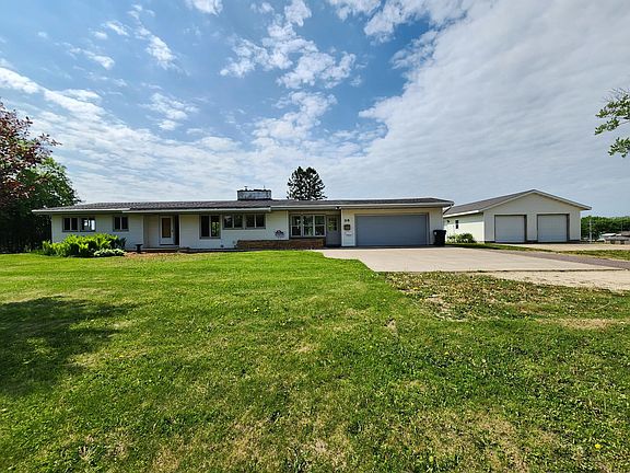 This statement rambler home sits on 1.4 acres on a corner lot in the heart of Plainview, MN. It emits charm both on the inside and out. It has an attached 2 stall garage as well as a detached 2 stall garage with an insulated workshop. The large windows throughout this home allow natural light in every room and the built in's add character around every corner. The kitchen has white cabinets that accent the wood ceilings and granite countertops. This home has two wood burning fireplaces and an additional kitchen in the basement with stovetop and dishwasher. This large lot offers two pear trees, plum tree, lilac bushes and much more to enjoy. NOTE: This home will be getting new siding, facia and gutters per the color request from buyer.